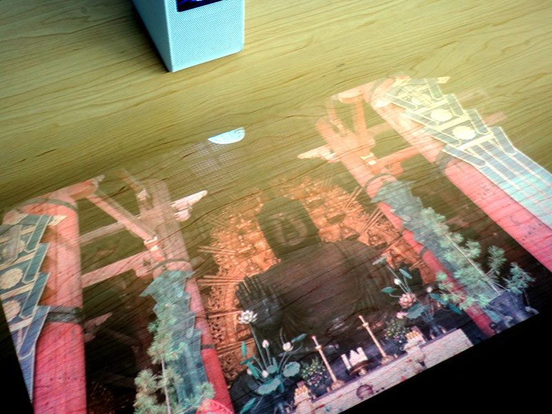 木目のテーブルに投影したイメージ 村澤氏 日経クロストレンド