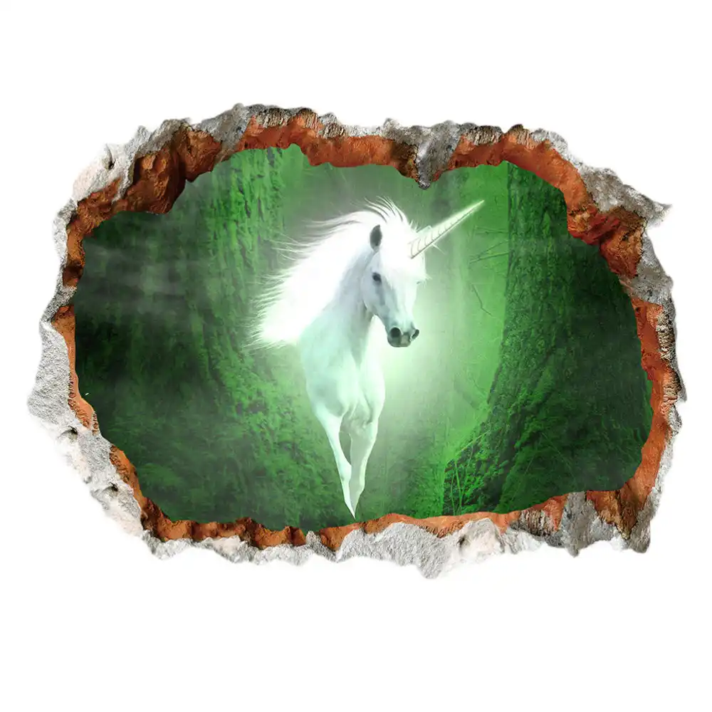 1 Pc 3d ブロークン壁クリエイティブ緑の森ユニコーン壁用ステッカー
