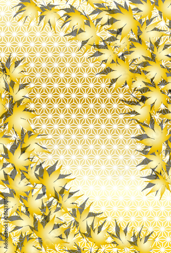 Fototapeta 和風背景 日本の伝統模様 麻葉紋様 楓の葉 紅葉 秋の落葉のイメージ かえで Background Wallpaper Vector